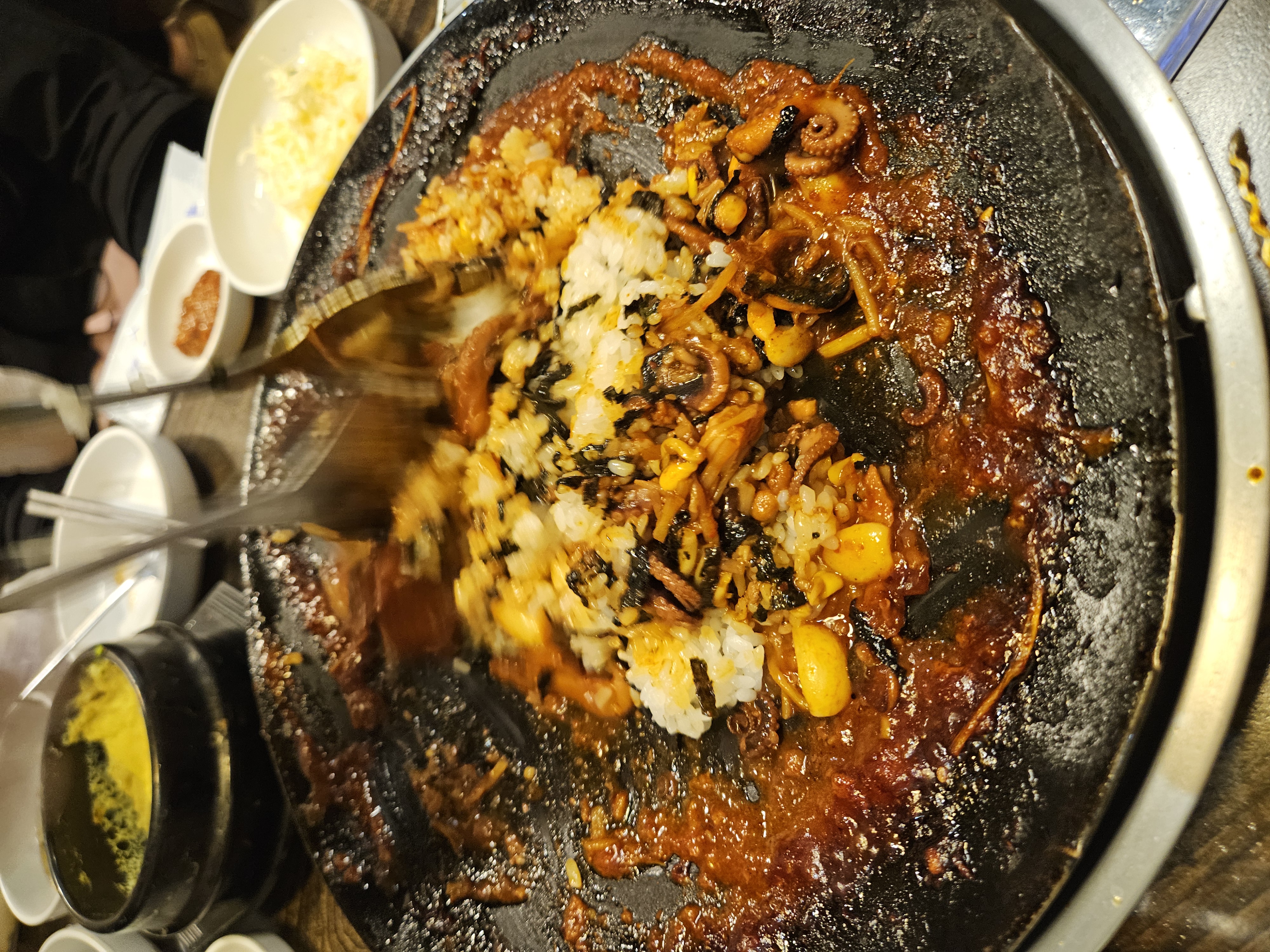 매콤한 쭈꾸미의 강한 매운맛에 기침이 나오네요.😂