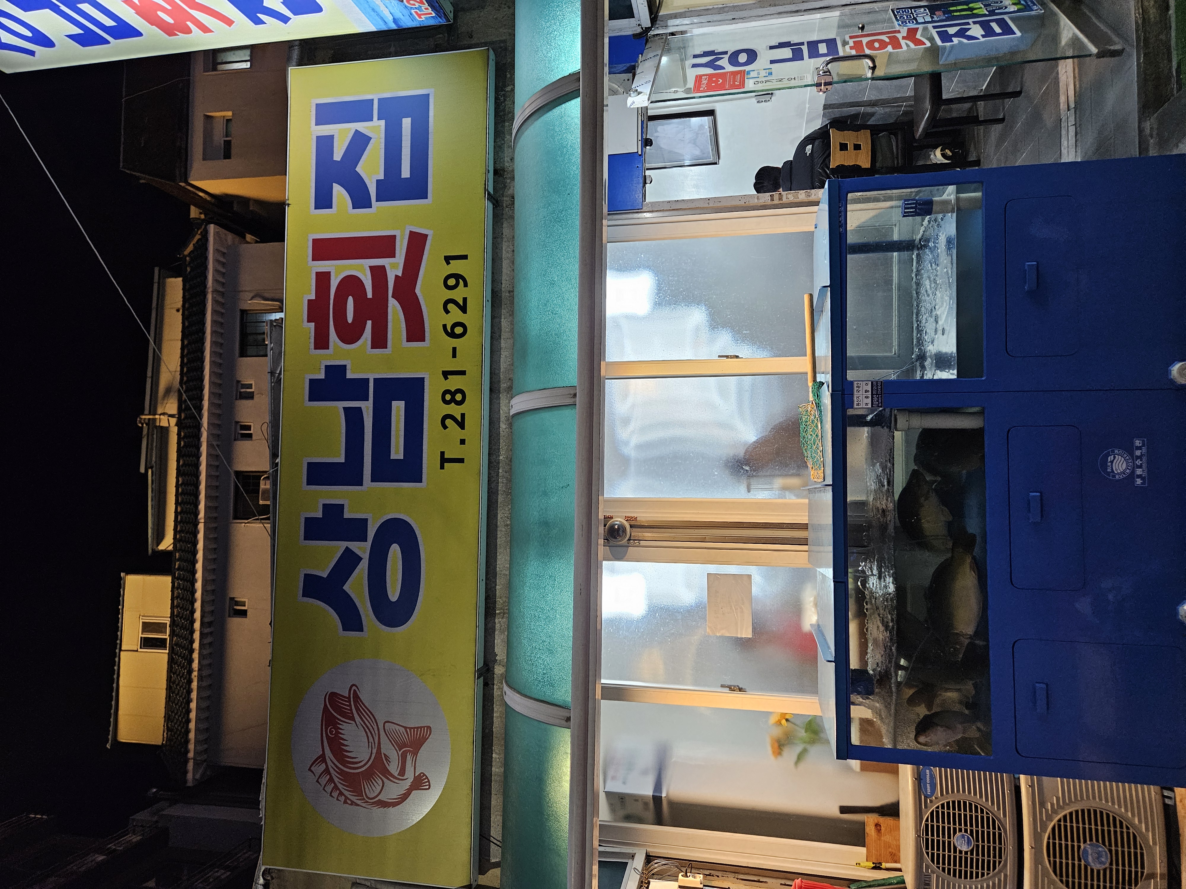 수조에 큼지막한 향어가 가득 담겨있네요.. 미안해서 눈을 마주치지 않고 들어갔습니다. ㅎ