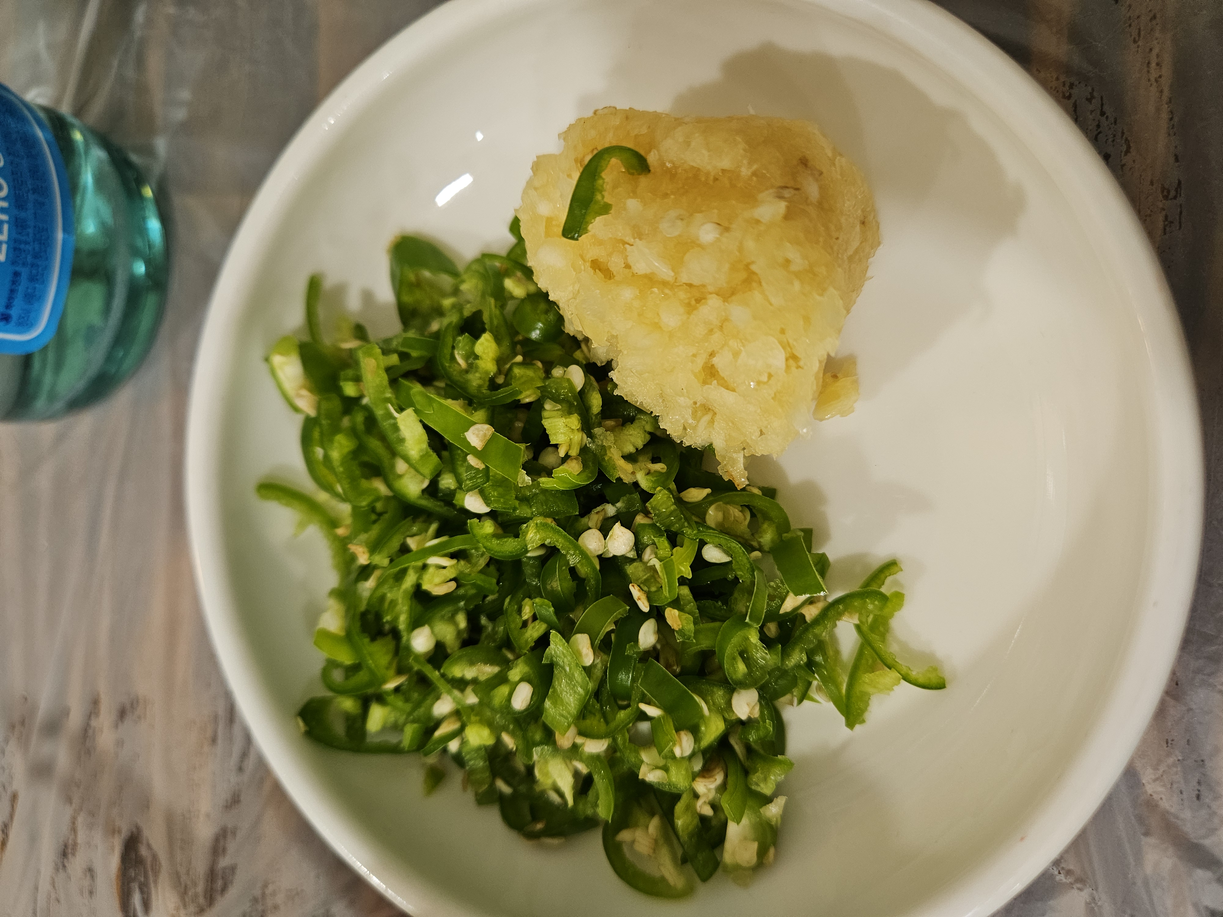 땡초와 다진 마늘을 초장에 넣어 버무려 먹어야지요.