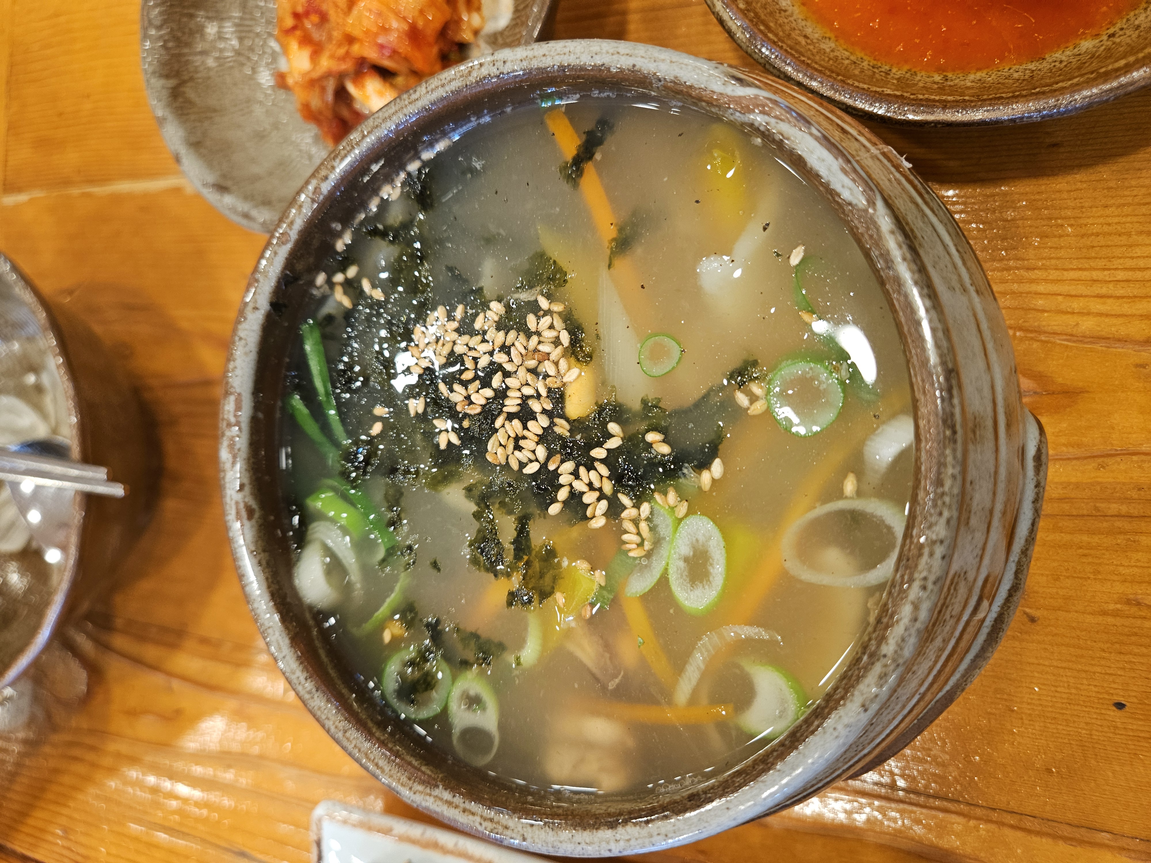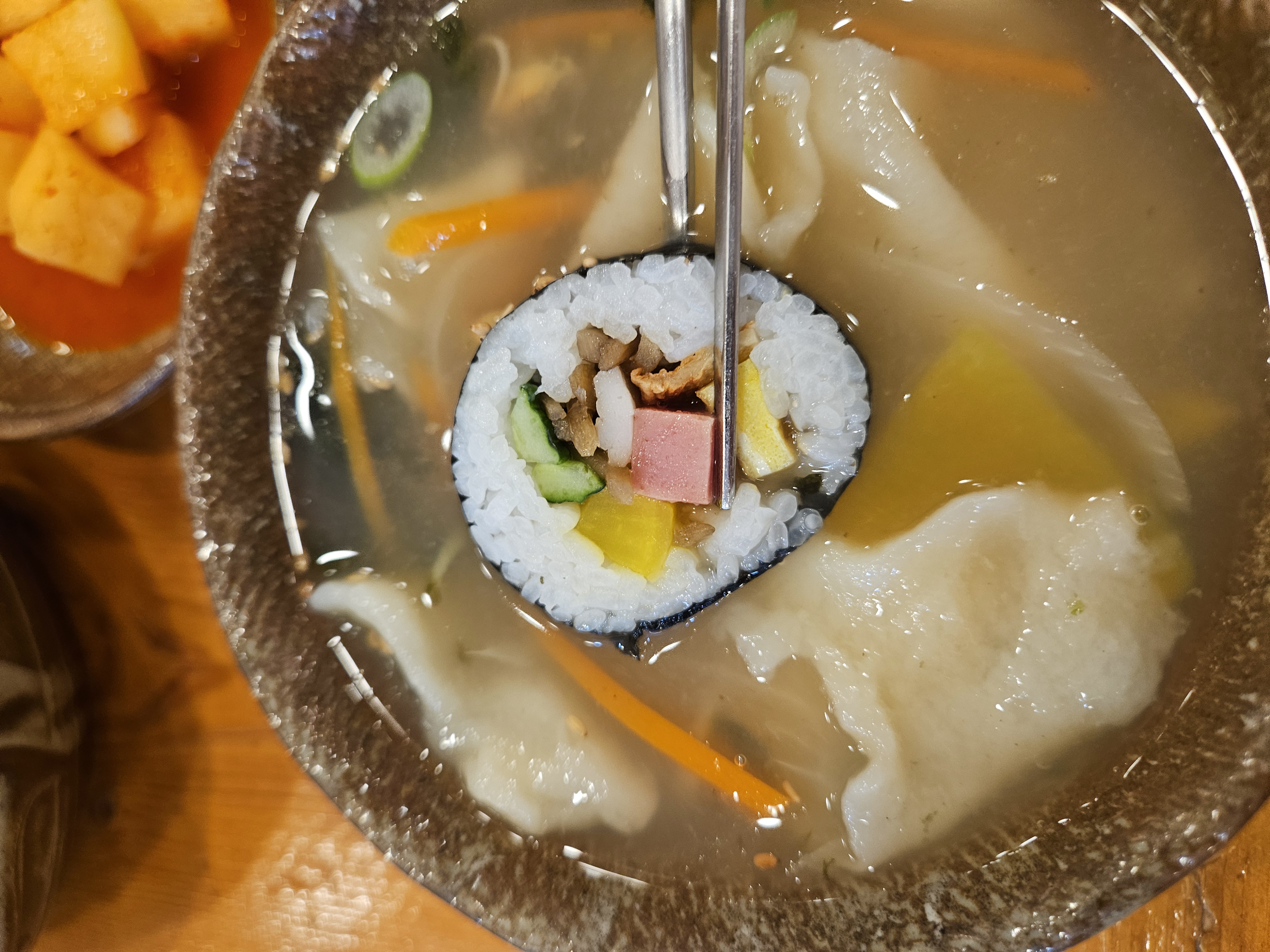 이곳의 시그니처 항아리 수제비와 김밥을 주문했습니다.