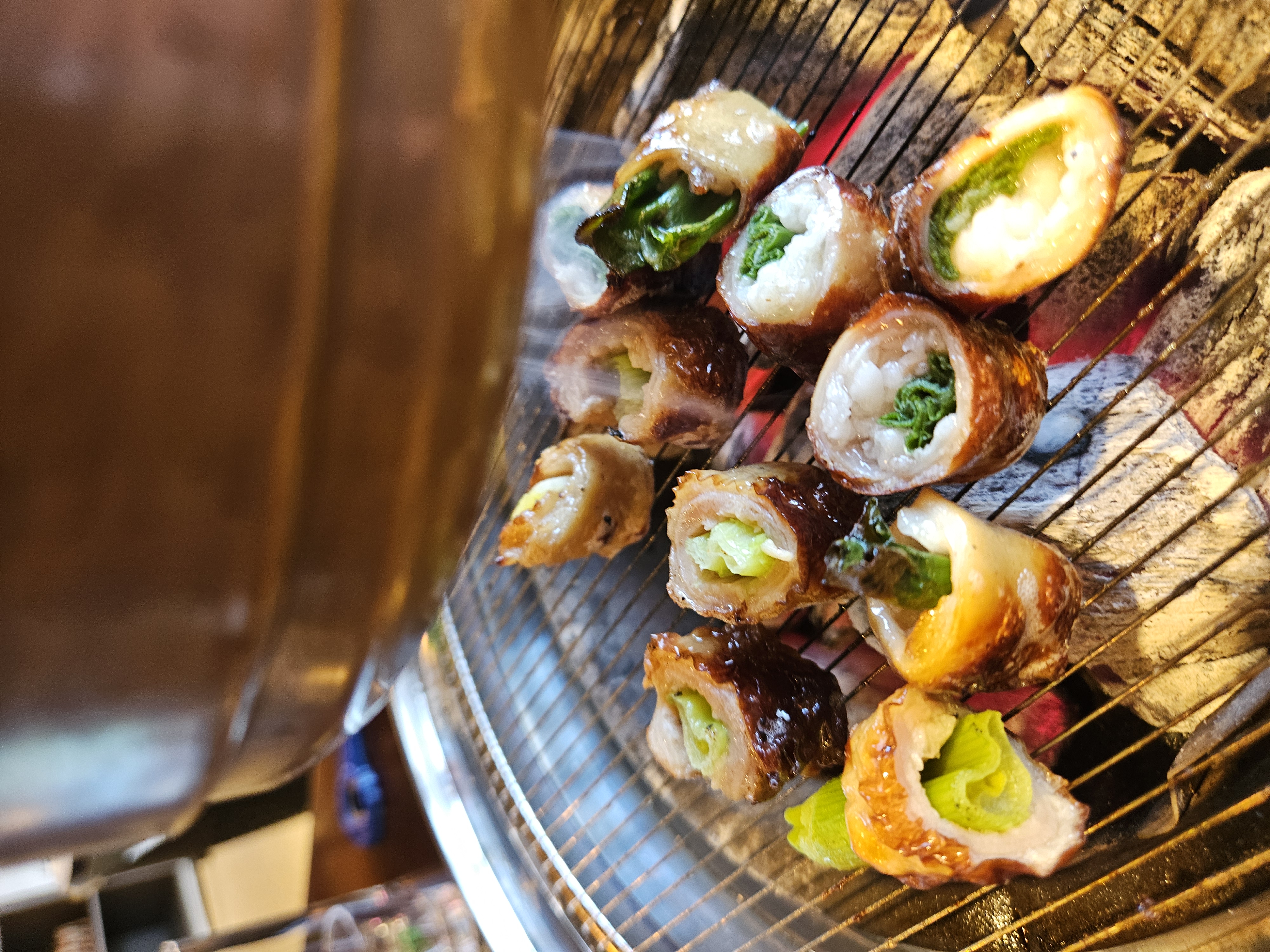 김밥처럼 파를 넣어 말은 것 같네요.